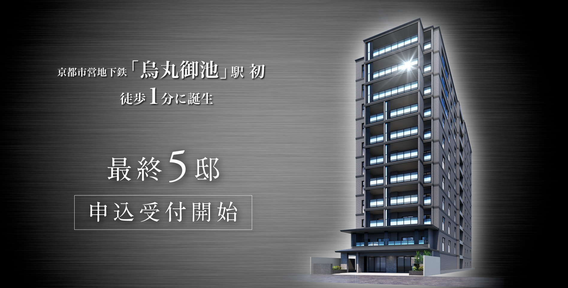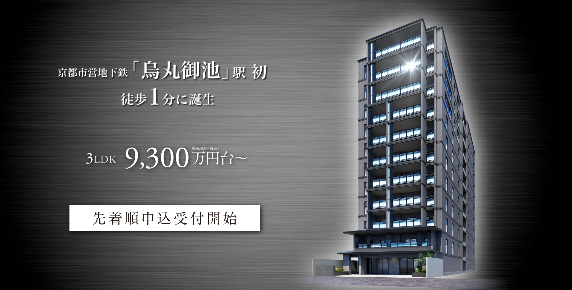 ※掲載の外観完成予想図は計画中の設計図書に基づき描き起こしたもので、官公庁の指導、施工上の都合により建物の形状・色調・植栽などに変更が生じる場合があります。予めご了承ください。※「イーグルコート京都鳥丸御池」は、1995年以降、京都市営地下鉄「烏丸御池」駅より徒歩1分圏内の新築分譲マンションとして『「烏丸御池」駅初』となります。(2025年2月MRC調べ)※掲載の環境写真は、2022年9月および2025年2月に撮影したものに一部CG加工を施したものであり、実際とは多少異なります。一部イメージ写真を含みます。※徒歩分数は80mを1分として算出(端数切り上げ)した概算時間です。※距離表示は現地からの地図上での慨測距離です。※掲載の図面は計画中の図面を基に描き起こしたもので、詳細が変更になる場合がございます。
